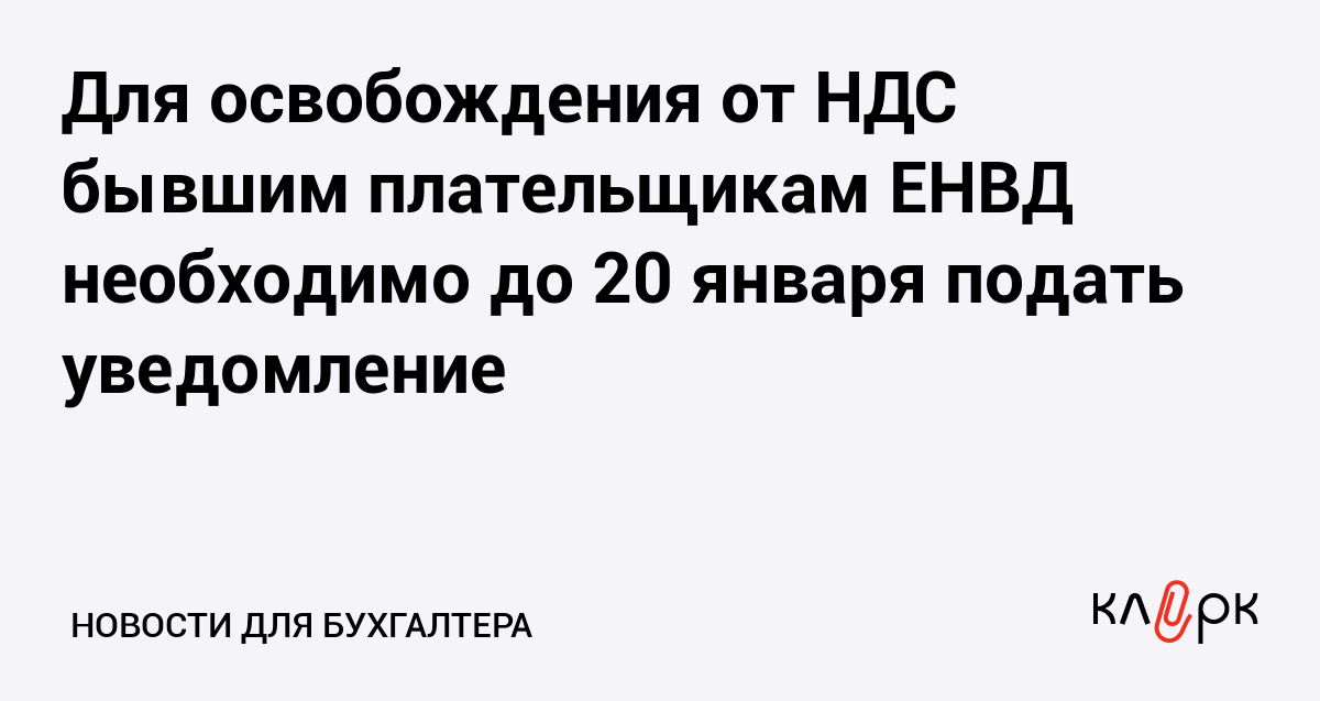 Для освобождения от НДС бывшим плательщикам ЕНВД необходимо до 20 января подать уведомление