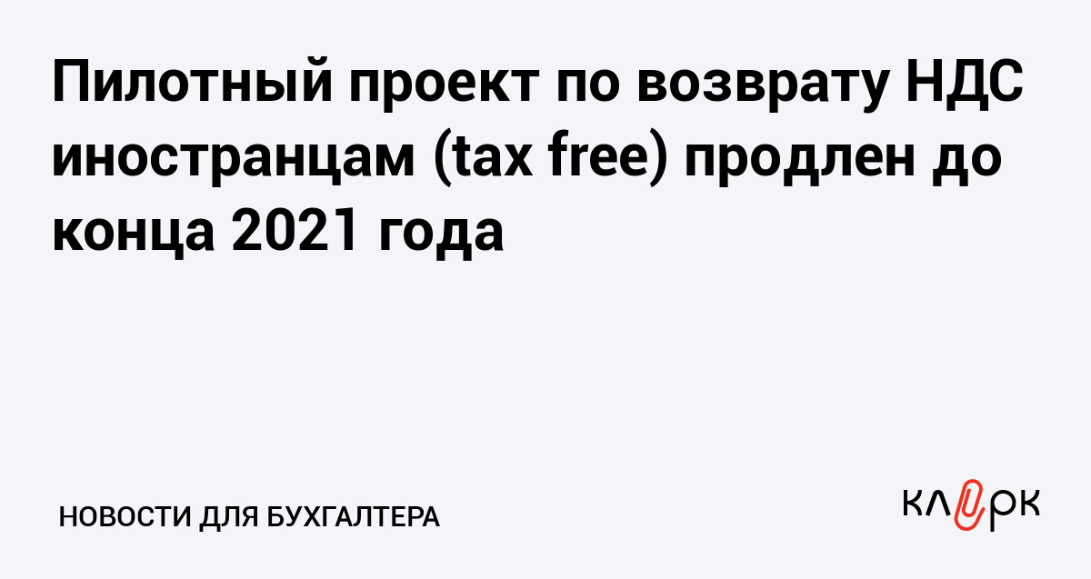 Эксперимент по возврату НДС иностранцам при вывозе приобретённых в России товаров за пределы ЕАЭС (tax free) продлен до конца 2021 г. Постановление Правительства от 20 января 2021 г. № 22 вступает в силу с даты его опубликования.