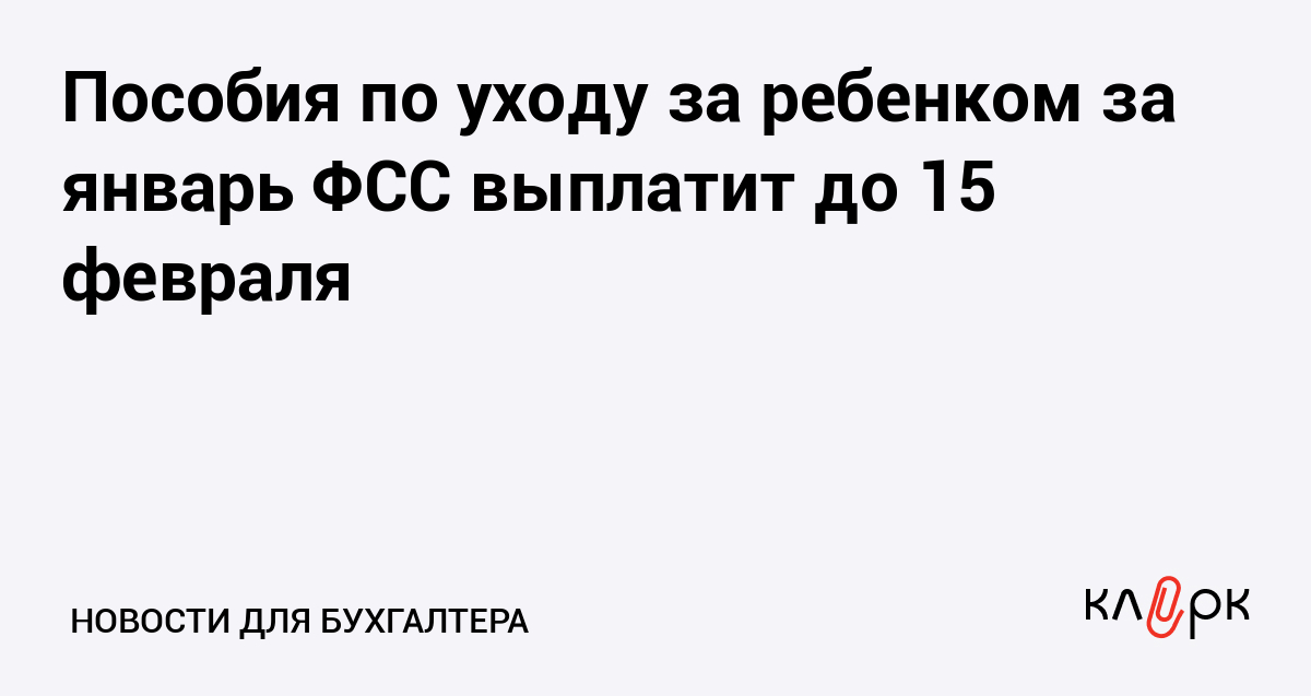 Пособия по уходу за ребенком за январь ФСС выплатит до 15 февраля