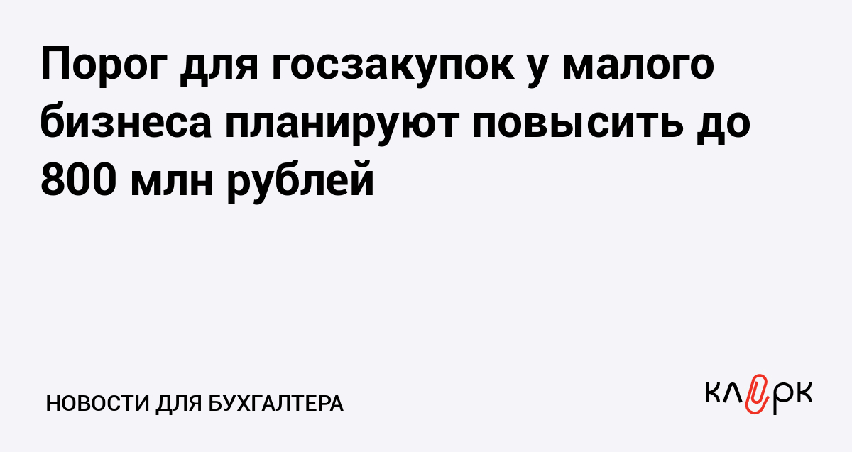 Порог для госзакупок у малого бизнеса планируют повысить до 800 млн рублей