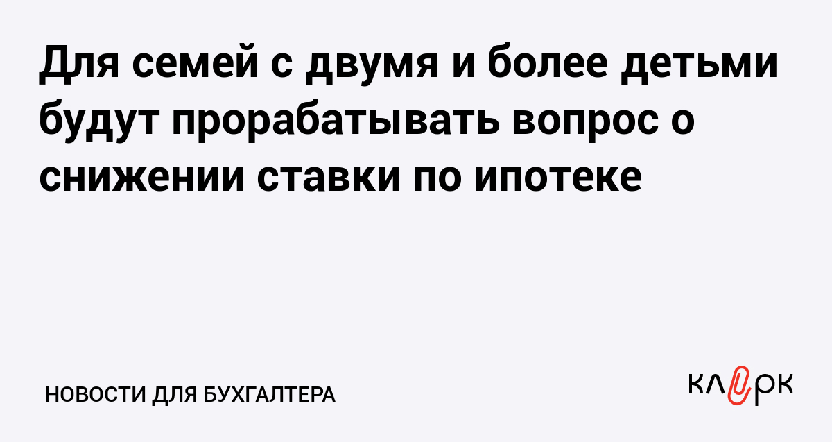 Для семей с двумя и более детьми будут прорабатывать вопрос о снижении ставки по ипотеке
