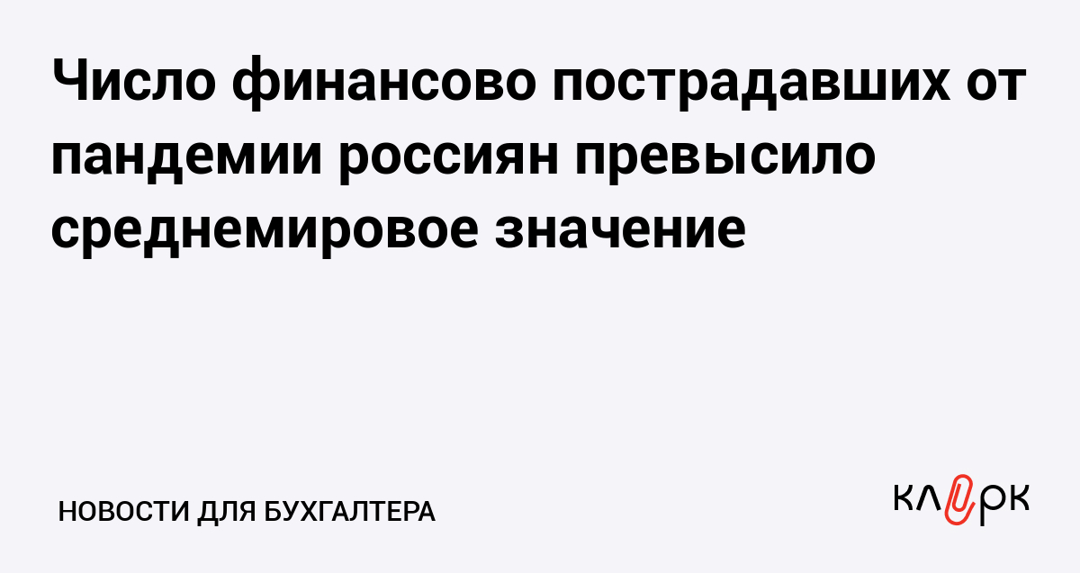 Число финансово пострадавших от пандемии россиян превысило среднемировое значение