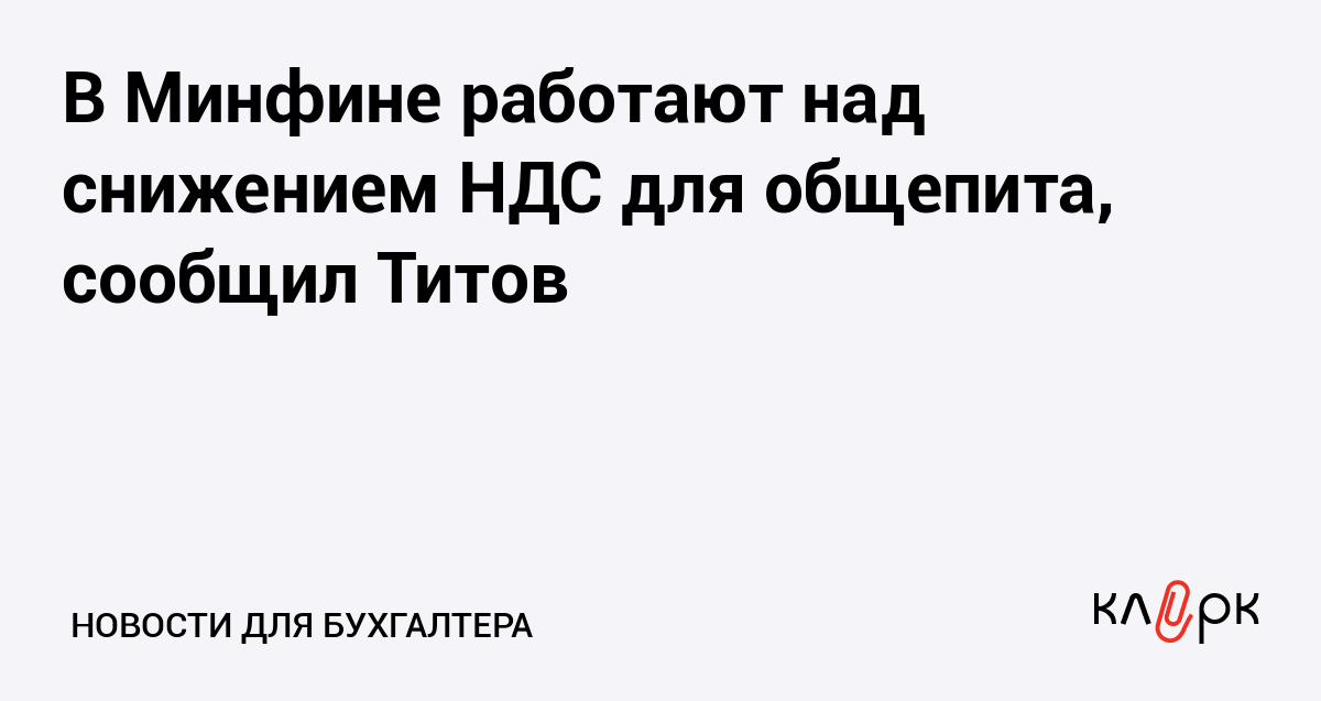 В Минфине работают над снижением НДС для общепита, сообщил Титов
