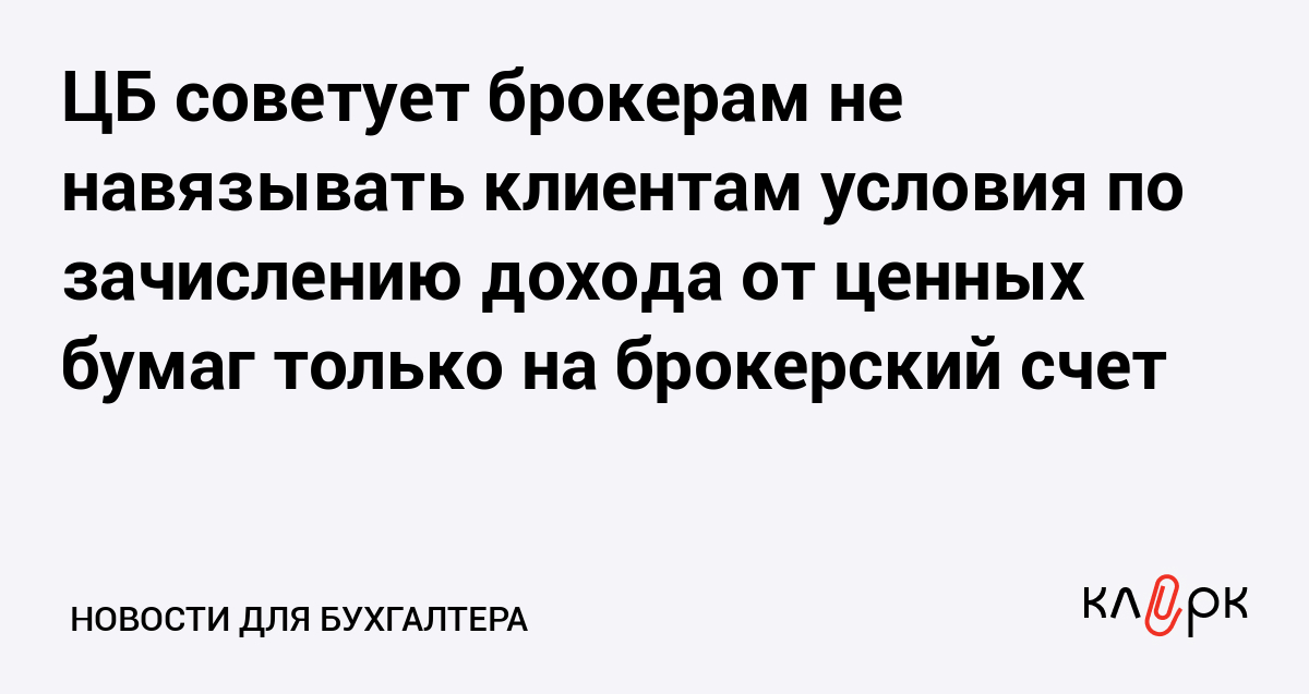 ЦБ советует брокерам не навязывать клиентам условия по зачислению дохода от ценных бумаг только на брокерский счет