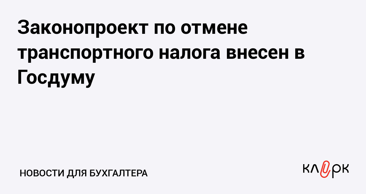 Сегодня в Госдуму поступил законопроект № 1149361-7 с поправками в НК в части отмены транспортного налога.