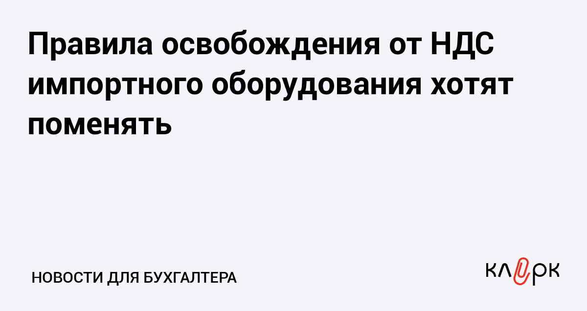 Правила освобождения от НДС импортного оборудования хотят поменять