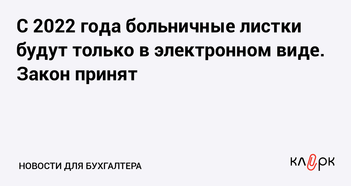 С 2022 года больничные листки будут только в электронном виде. Закон принят