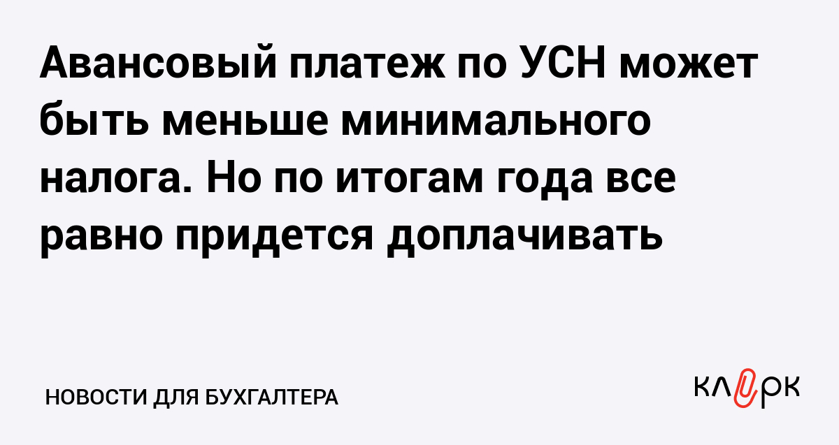 Авансовый платеж по УСН может быть меньше минимального налога. Но по итогам года все равно придется доплачивать