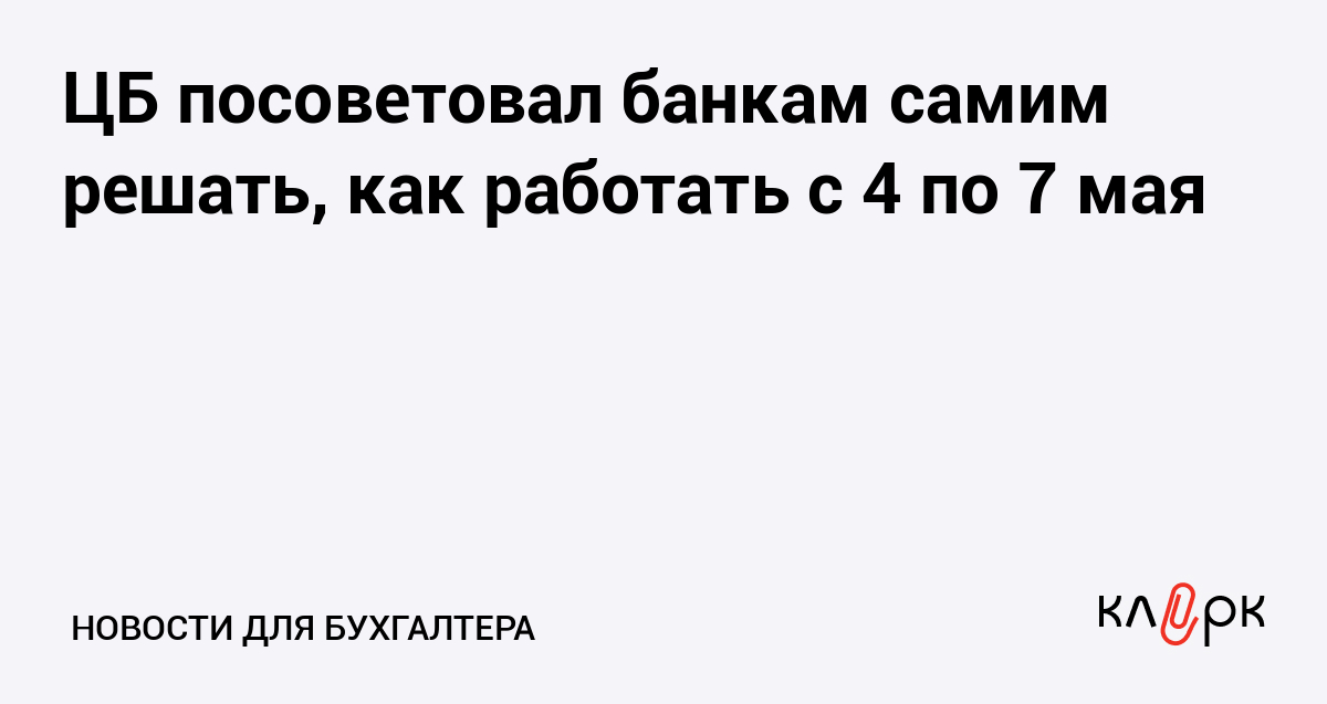 ЦБ посоветовал банкам самим решать, как работать с 4 по 7 мая