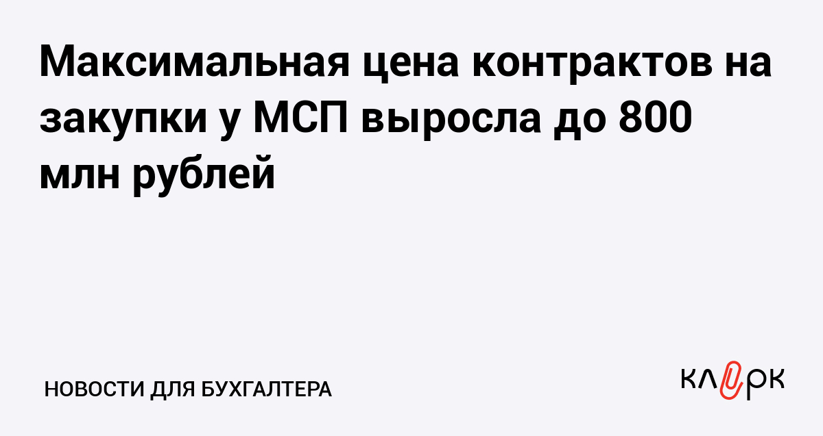 Максимальная цена контрактов на закупки у МСП выросла до 800 млн рублей