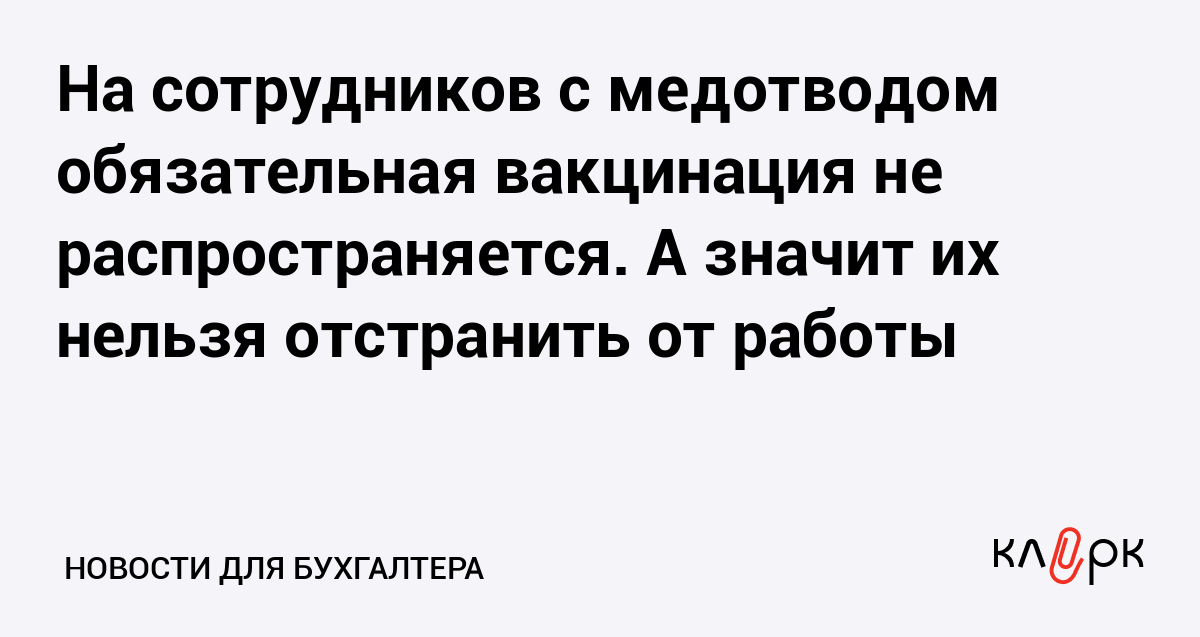 Таким образом, раз на людей с медотводом обязательная вакцинация не распространяется, их нельзя отстранять от работы за отказ от прививки.