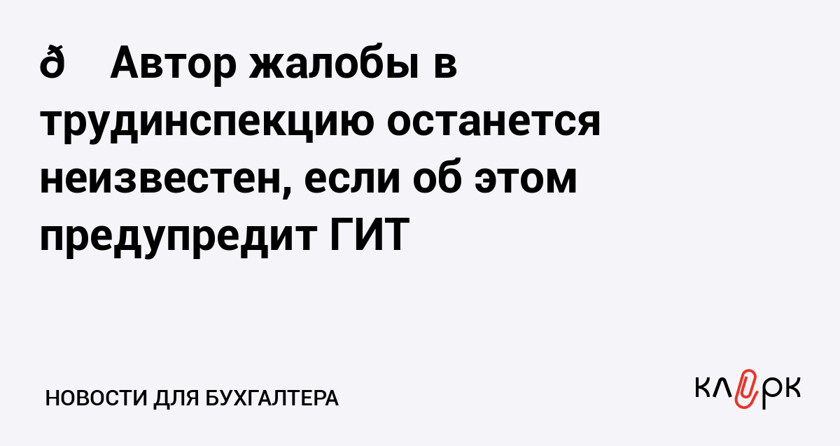📃 Автор жалобы в трудинспекцию останется неизвестен, если об этом предупредит ГИТ