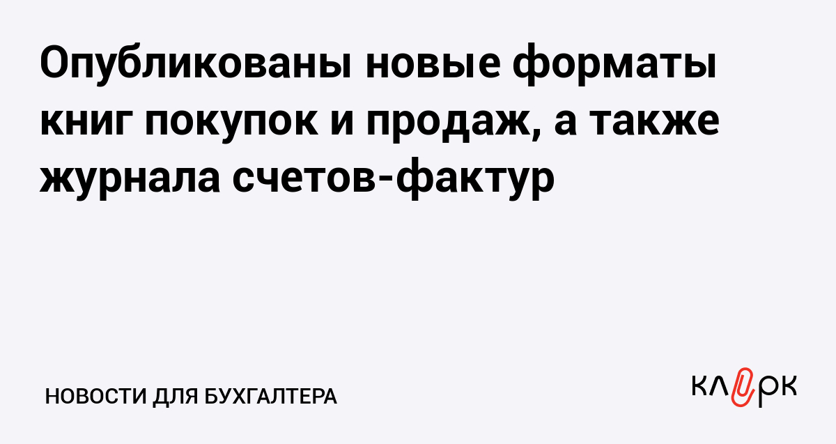 Опубликованы новые форматы книг покупок и продаж, а также журнала счетов-фактур