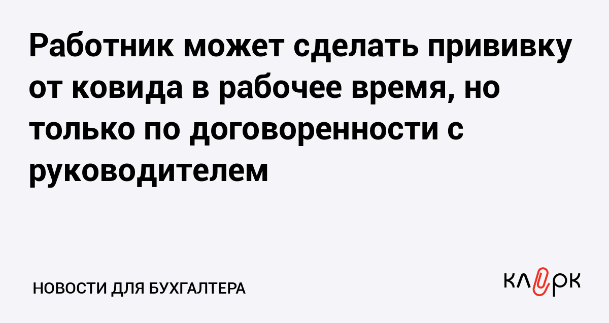 Работник может сделать прививку от ковида в рабочее время, но только по договоренности с руководителем