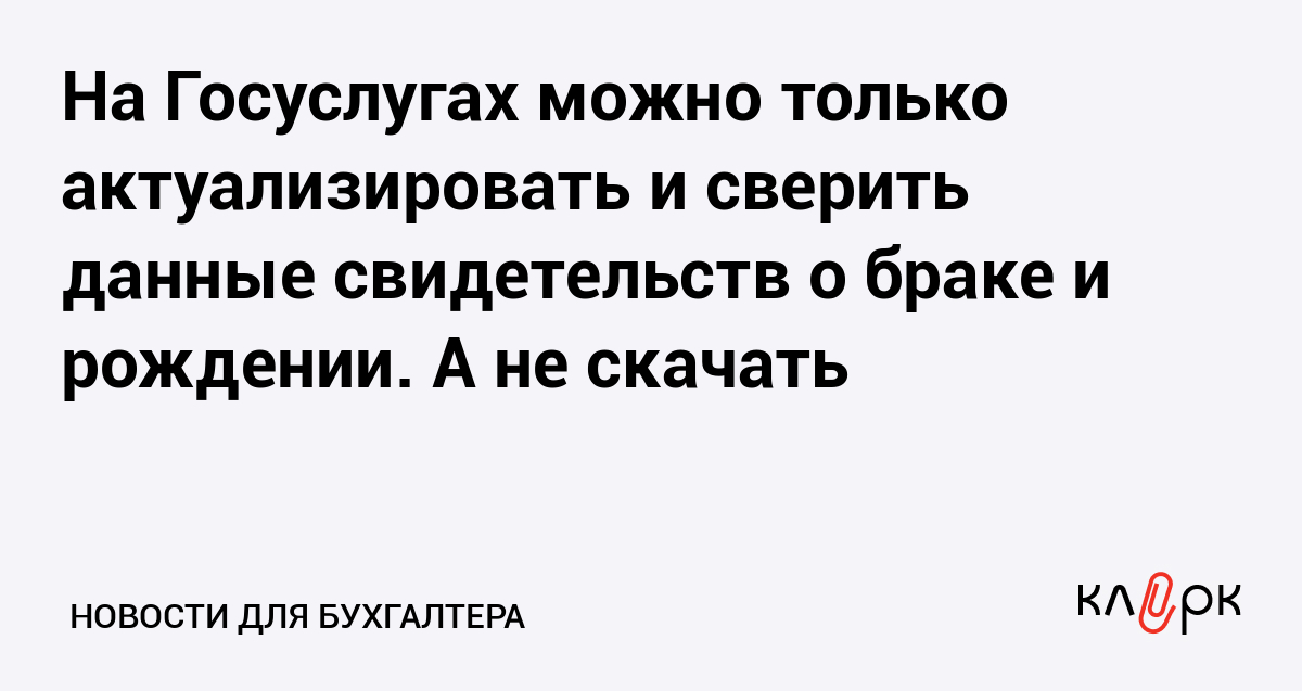 На Госуслугах можно только актуализировать и сверить данные свидетельств о браке и рождении. А не скачать
