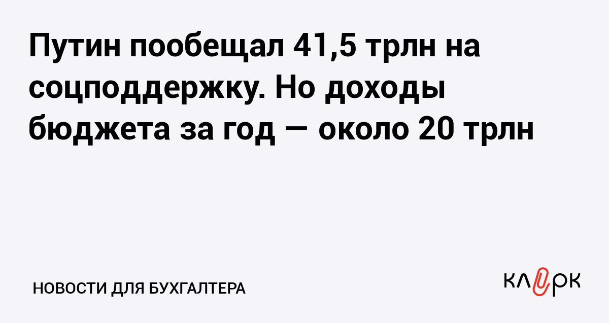 Путин пообещал 41,5 трлн на соцподдержку. Но доходы бюджета за год — около 20 трлн