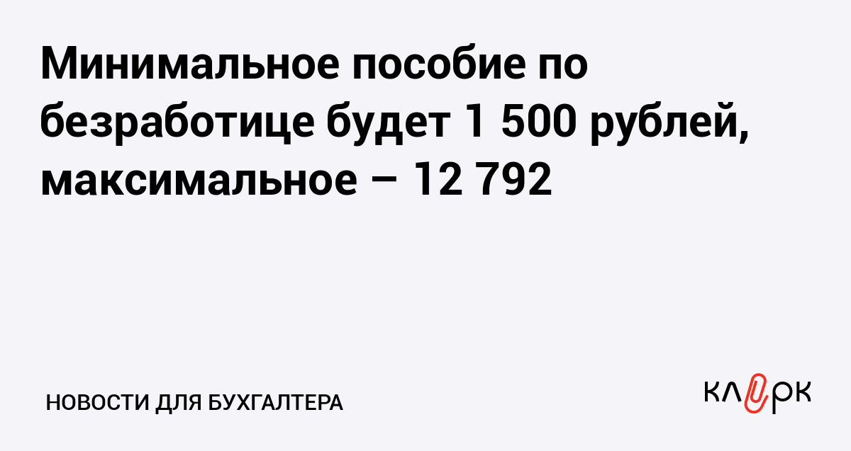 Минимальное пособие по безработице будет 1 500 рублей, максимальное – 12 792