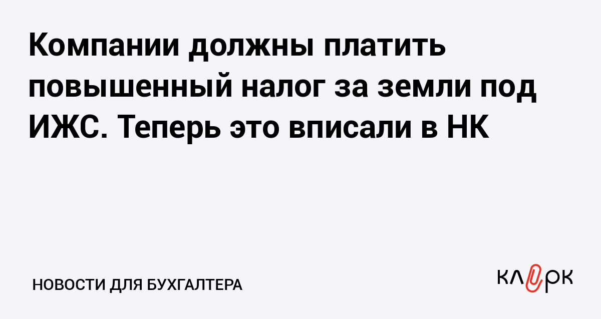 Компании должны платить повышенный налог за земли под ИЖС. Теперь это вписали в НК