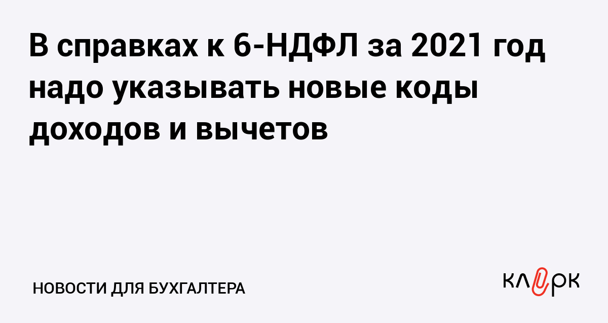 В справках к 6-НДФЛ за 2021 год надо указывать новые коды доходов и вычетов