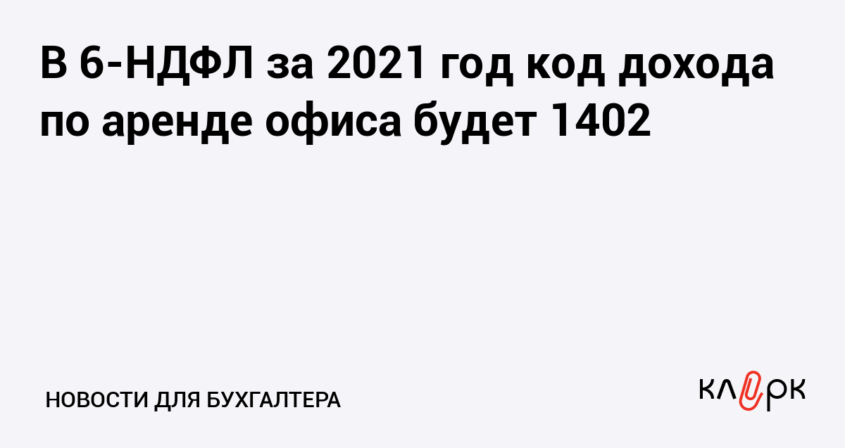 В 6-НДФЛ за 2021 год код дохода по аренде офиса будет 1402