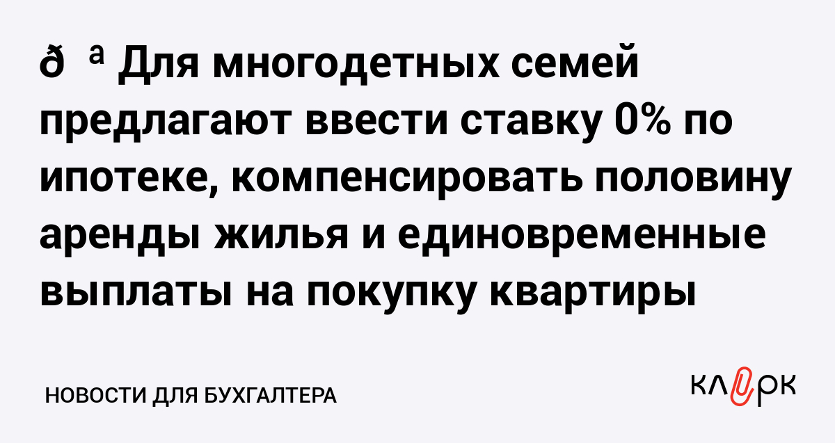 👪 Для многодетных семей предлагают ввести ставку 0% по ипотеке, компенсировать половину аренды жилья и единовременные выплаты на покупку квартиры