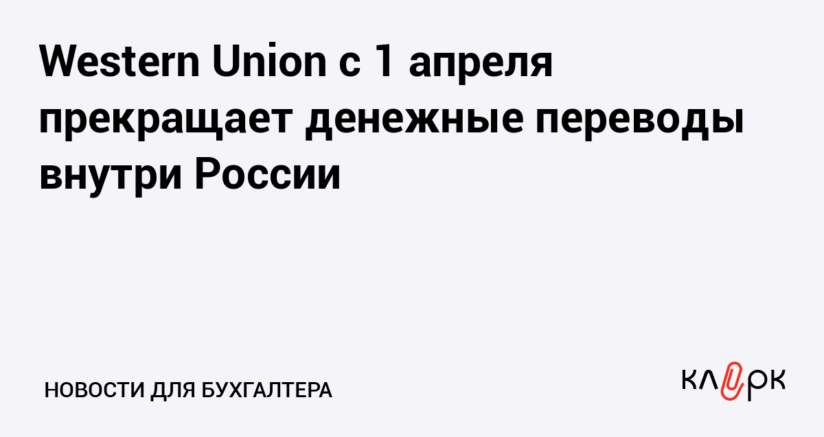 Отправить перевод внутри России через Western Union нельзя будет уже 31 марта, а 1 апреля исчезнет возможность получить выплату или возврат. Те отправители, которые оформили перевод до 31 марта, но он не был получен адресатом, смогут с 1 апреля вернуть деньги в отделениях «Почты России».
