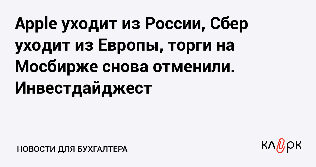 Apple уходит из России, Сбер уходит из Европы, торги на Мосбирже снова отменили. Инвестдайджест