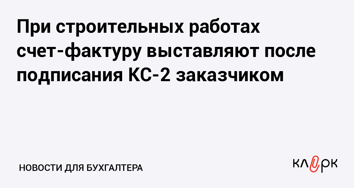 При строительных работах счет-фактуру выставляют после подписания КС-2 заказчиком