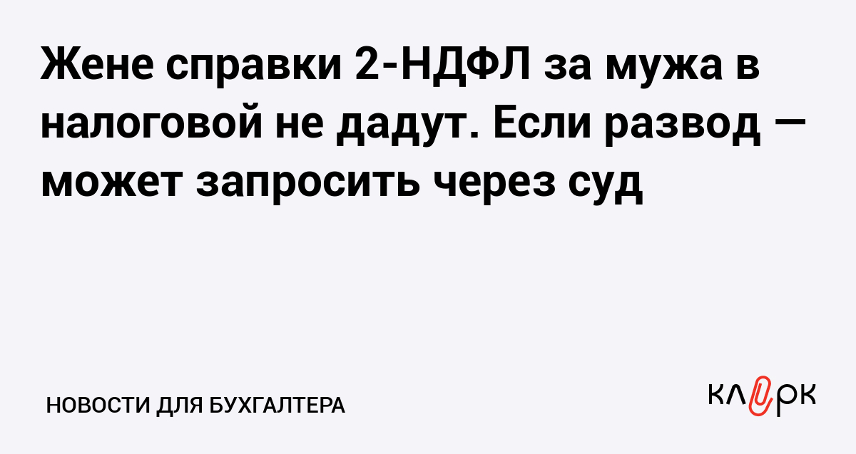 Жене справки 2-НДФЛ за мужа в налоговой не дадут. Если развод — может запросить через суд