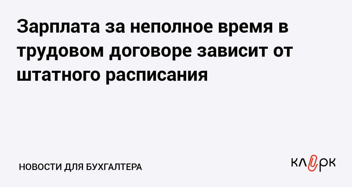 Зарплата за неполное время в трудовом договоре зависит от штатного расписания