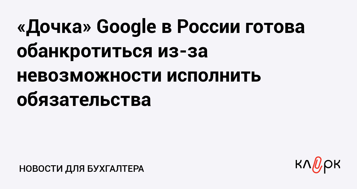 «Дочка» Google в России готова обанкротиться из-за невозможности исполнить обязательства