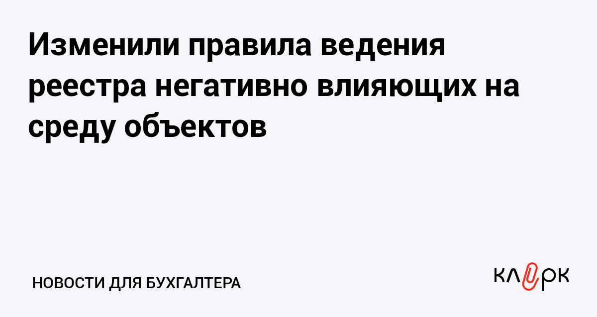 Изменили правила ведения реестра негативно влияющих на среду объектов