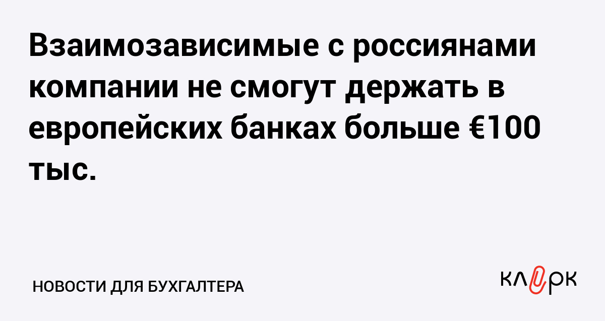 Взаимозависимые с россиянами компании не смогут держать в европейских банках больше €100 тыс.