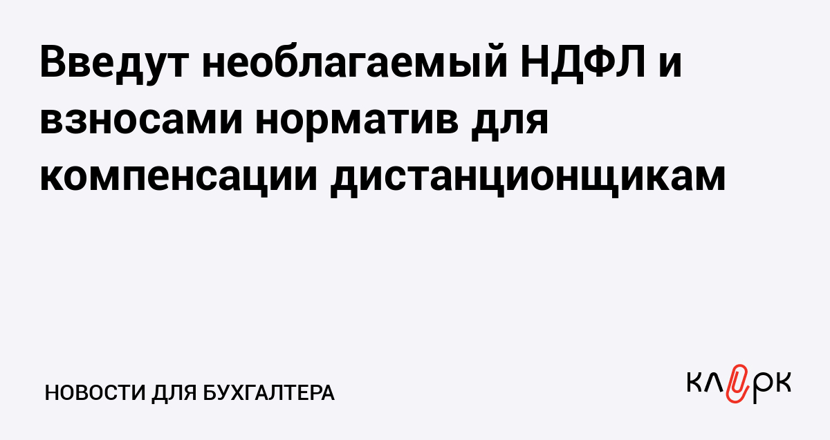 Введут необлагаемый НДФЛ и взносами норматив для компенсации дистанционщикам