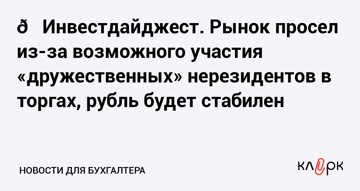 📊Инвестдайджест. Рынок просел из-за возможного участия «дружественных» нерезидентов в торгах, рубль будет стабилен