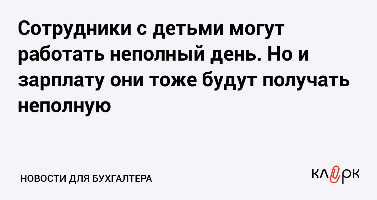 Сотрудники с детьми могут работать неполный день. Но и зарплату они тоже будут получать неполную