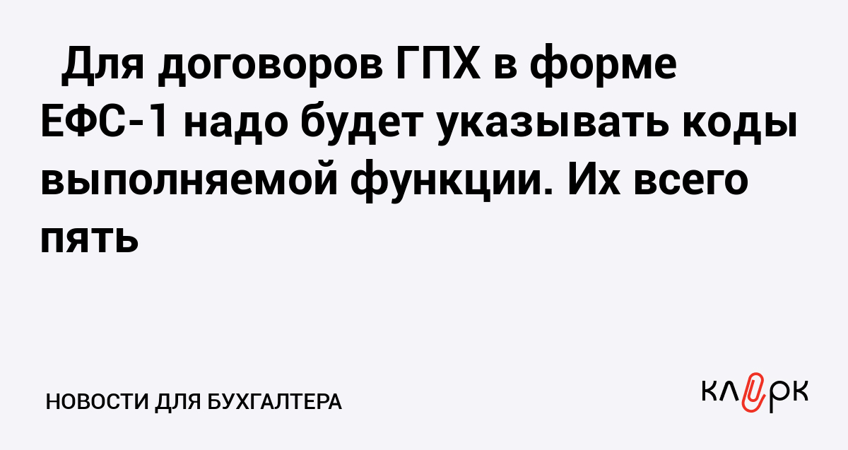 ❗ Для договоров ГПХ в форме ЕФС-1 надо будет указывать коды выполняемой функции. Их всего пять