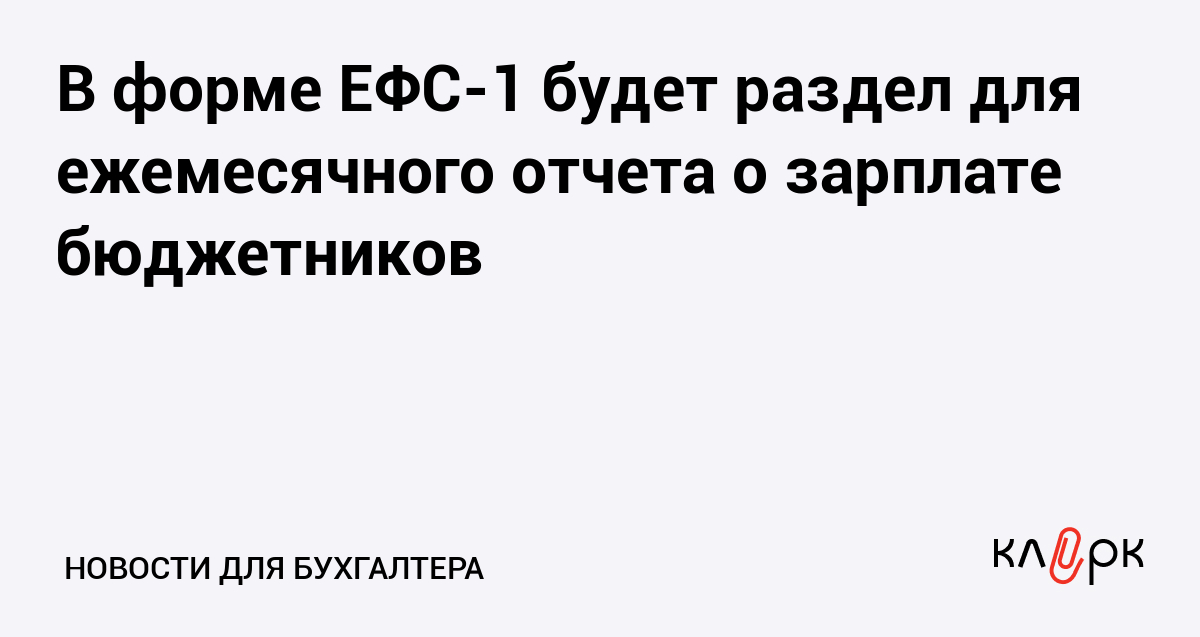 В форме ЕФС-1 будет раздел для ежемесячного отчета о зарплате бюджетников