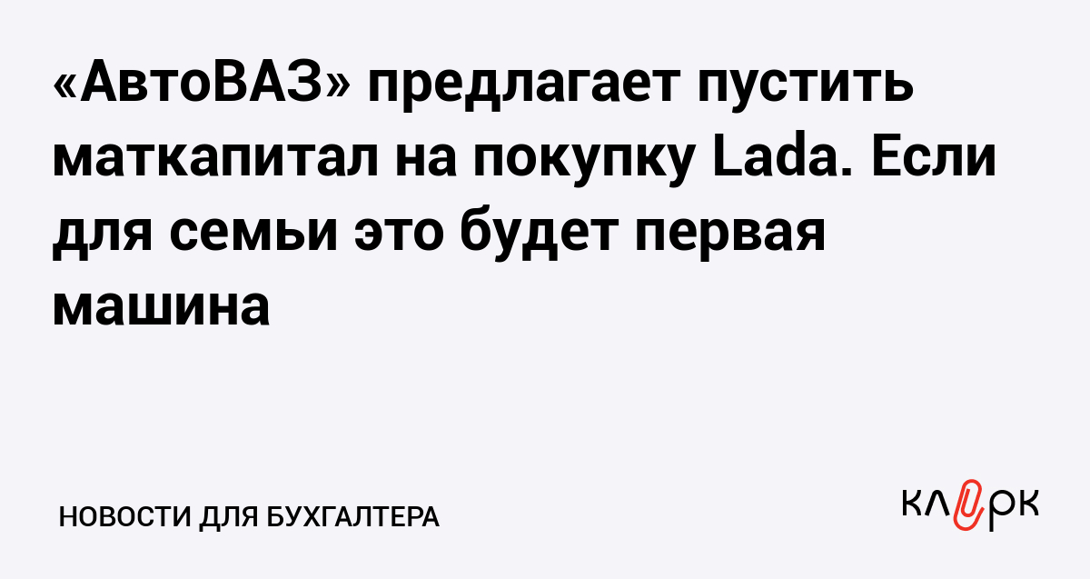 «АвтоВАЗ» предлагает пустить маткапитал на покупку Lada. Если для семьи это будет первая машина