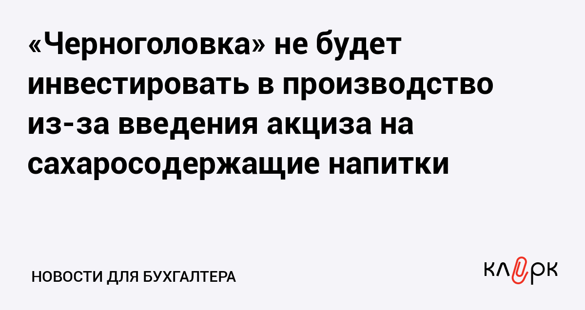 «Черноголовка» не будет инвестировать в производство из-за введения акциза на сахаросодержащие напитки
