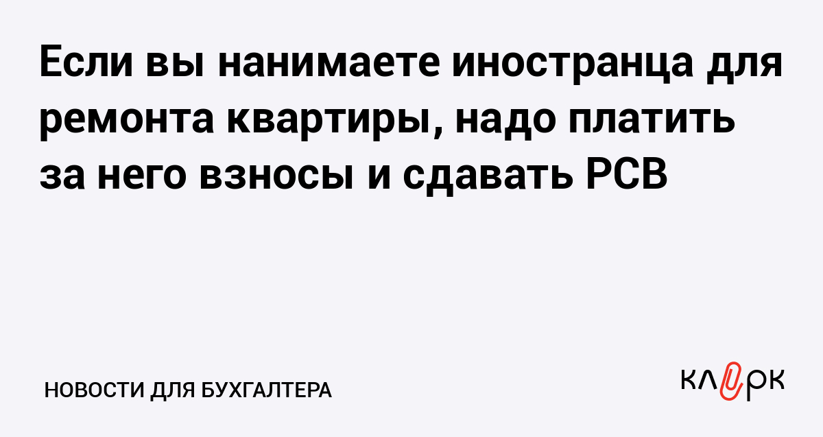 Если вы нанимаете иностранца для ремонта квартиры, надо платить за него взносы и сдавать РСВ