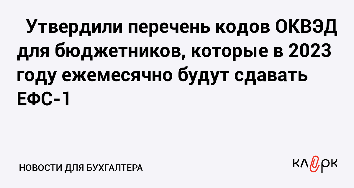 ✅ Утвердили перечень кодов ОКВЭД для бюджетников, которые в 2023 году ежемесячно будут сдавать ЕФС-1
