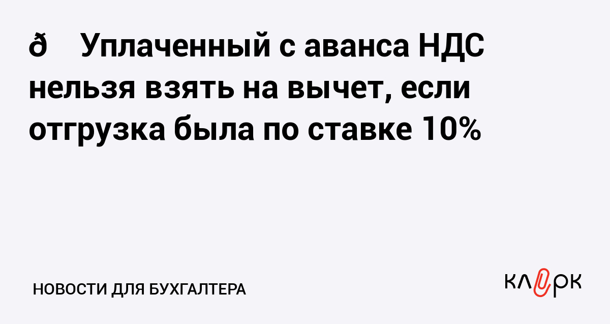 📛 Уплаченный с аванса НДС нельзя взять на вычет, если отгрузка была по ставке 10%
