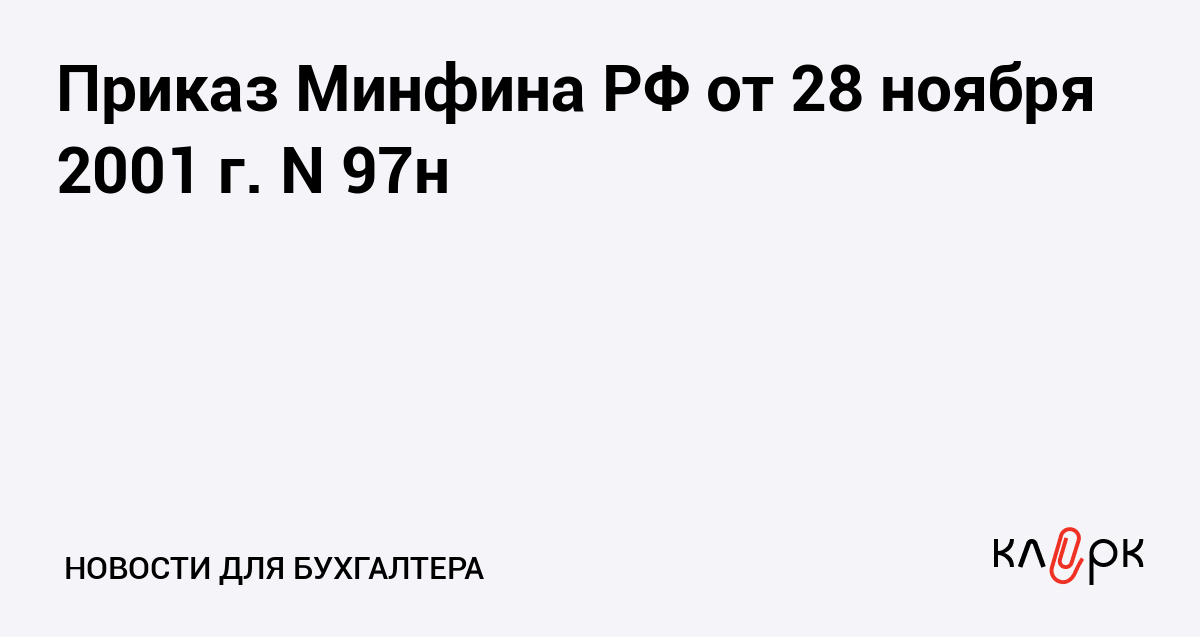 Приказ Минфина РФ от 28 ноября 2001 г. N 97н