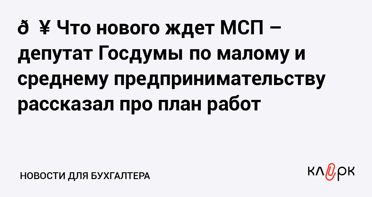 🔥 Что нового ждет МСП – депутат Госдумы по малому и среднему предпринимательству рассказал про план работ