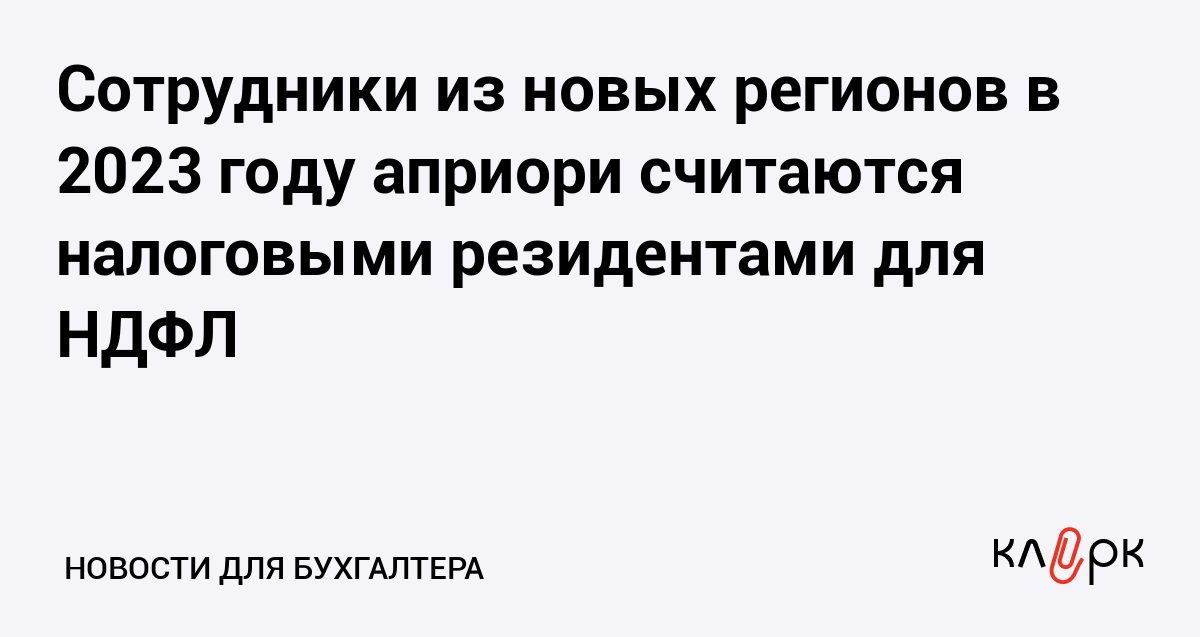 Сотрудники из новых регионов в 2023 году априори считаются налоговыми резидентами для НДФЛ