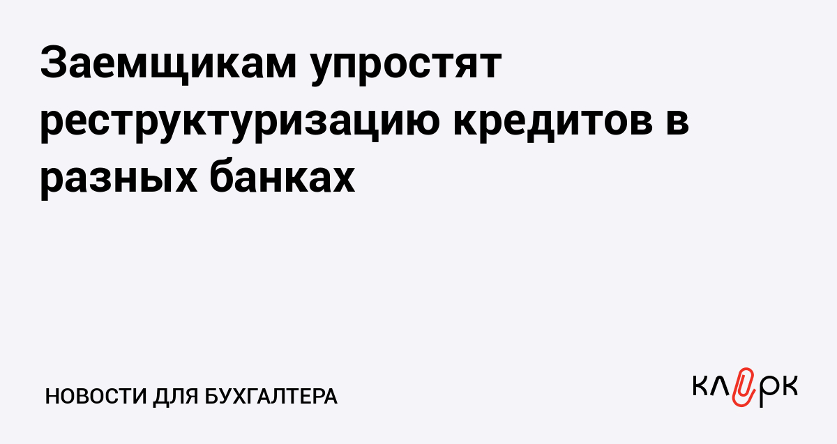 Заемщикам упростят реструктуризацию кредитов в разных банках