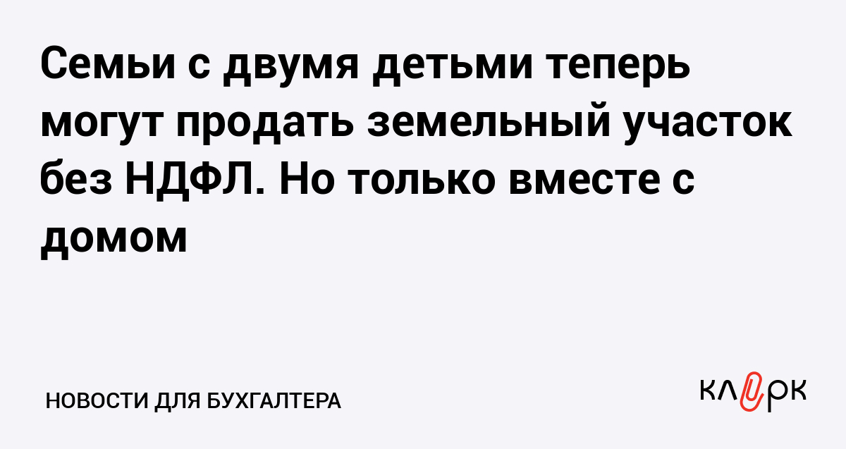 Семьи с двумя детьми теперь могут продать земельный участок без НДФЛ. Но только вместе с домом
