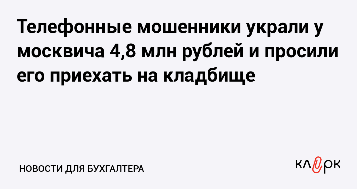 Телефонные мошенники украли у москвича 4,8 млн рублей и просили его приехать на кладбище