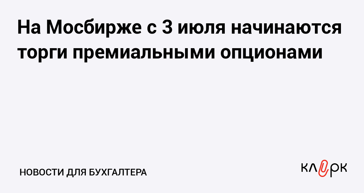 На Мосбирже с 3 июля начинаются торги премиальными опционами